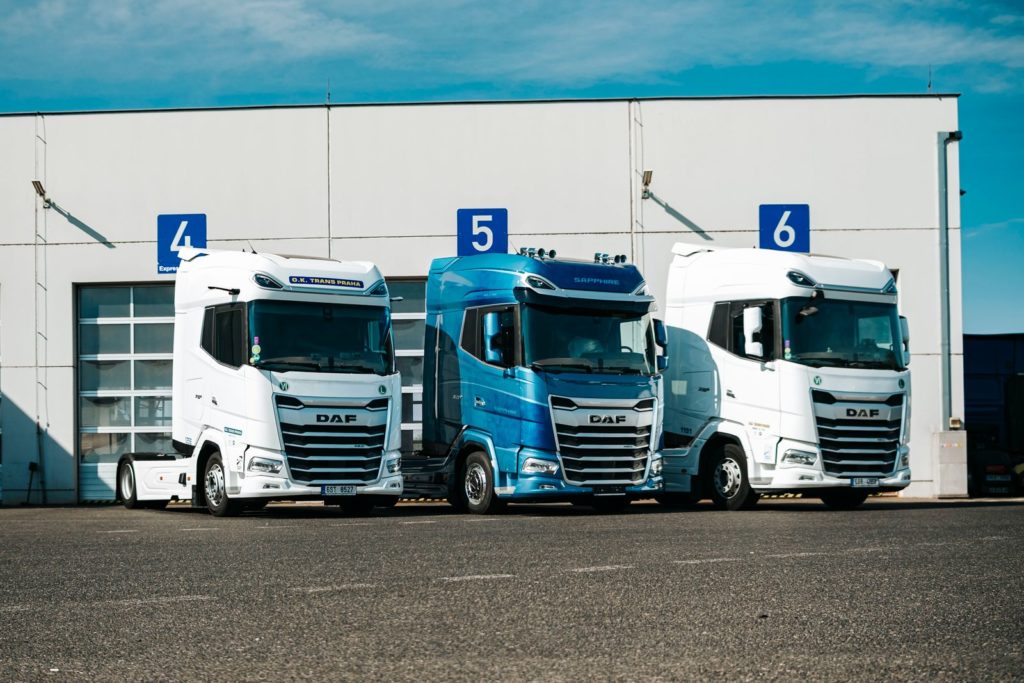 Stáří vozového parku do tří let - vozy DAF, Volvo a Mercedes (veškeré mýtné krabičky a tankovací karty).